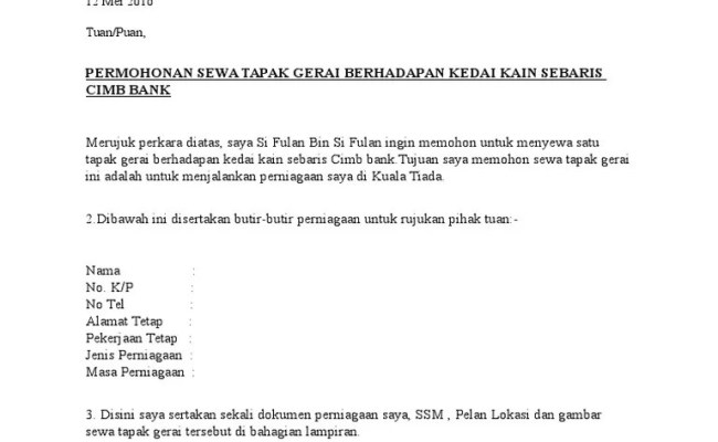 Contoh Surat Mohon Tapak Niaga Contoh Surat Otosection